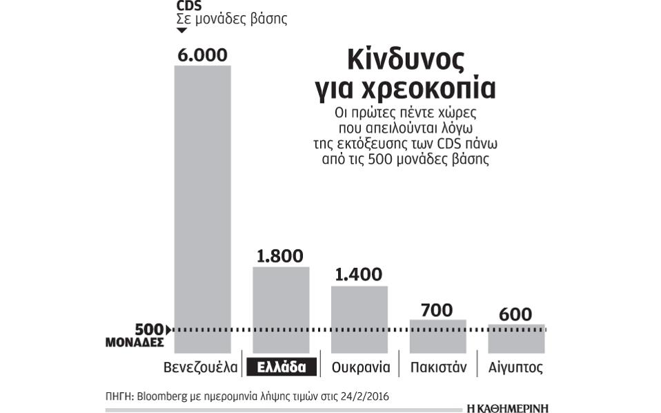 Η Βενεζουέλα και η Ελλάδα αποτελούν τις δύο χώρες του κόσμου με τις μεγαλύτερες πιθανότητες να χρεοκοπήσουν με βάση την εκτόξευση σε υψηλά επίπεδα του κόστους ασφάλισης έναντι αθέτησης πληρωμών (Credit Default Swap) των κρατικών ομολόγων, όπως αναφέρει σε έκθεσή της η Bank of America.