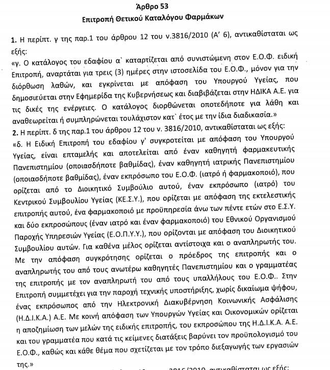 Με τις αλλαγές προβλέπεται η ανάρτηση του θετικού καταλόγου, στην ιστοσελίδα του ΕΟΦ, προς διαβούλευση, πριν την έκδοση της εγκριτικής Υπουργικής Απόφασης, για τη διόρθωση τυχόν λαθών.