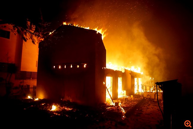 Η καταστροφή που αφήνουν πίσω τους οι φλόγες είναι πρωτοφανής. Σύμφωνα με την Πυροσβεστική Υπηρεσία, δεκάδες σπίτια έχουν καεί και πολλά ακόμα απειλούνται.