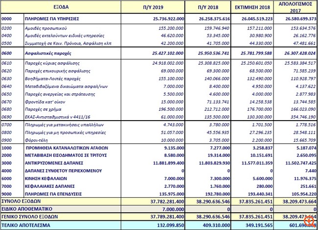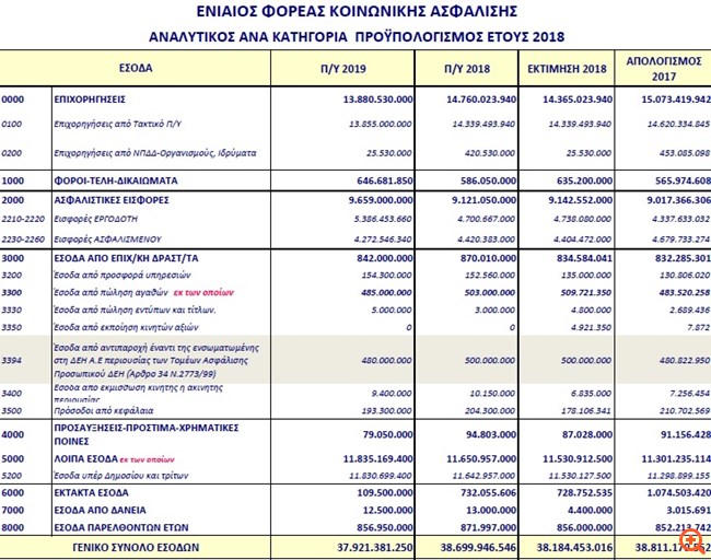 Σημειώνεται πως στις προβλέψεις για το 2019, προφανώς ενσωματώνονται οι προβλέψεις της εισηγητικής έκθεσης του προϋπολογισμού του κράτους σύμφωνα με τις οποίες δεν θα εφαρμοσθούν οι μειώσεις στις κύριες συντάξεις από την 1η/1/2019.