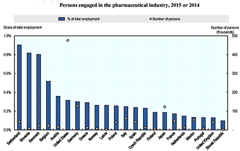Όπως προκύπτει από τον παρακάτω πίνακα του ΟΟΣΑ, ο κλάδος της φαρμακευτικής βιομηχανίας συμβάλλει καθοριστικά στην απασχόληση στην Ελλάδα.