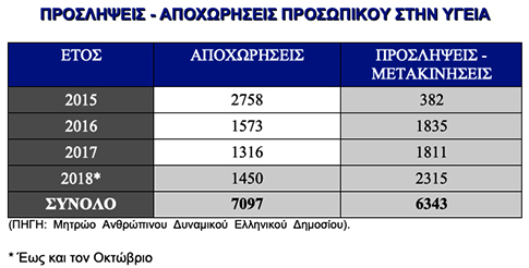 Η χειρότερη χρονιά για την παρούσα κυβέρνηση ήταν το 2015, όταν είχαν αποχωρήσει 2.758 εργαζόμενοι από τον χώρο της Υγείας και είχαν προσληφθεί μόλις 382.
