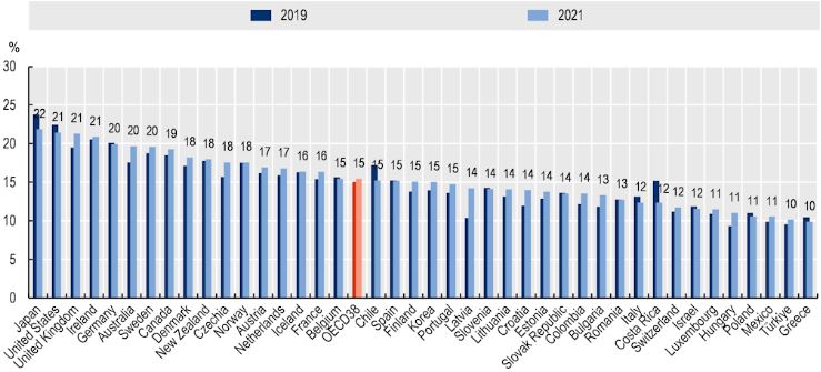 Τα προκαταρκτικά στοιχεία δείχνουν πως τα δύο τρίτα των χωρών του ΟΟΣΑ δείχνουν ότι το μέσο ποσοστό θα παραμείνει στο ίδιο επίπεδο έως το 2022.